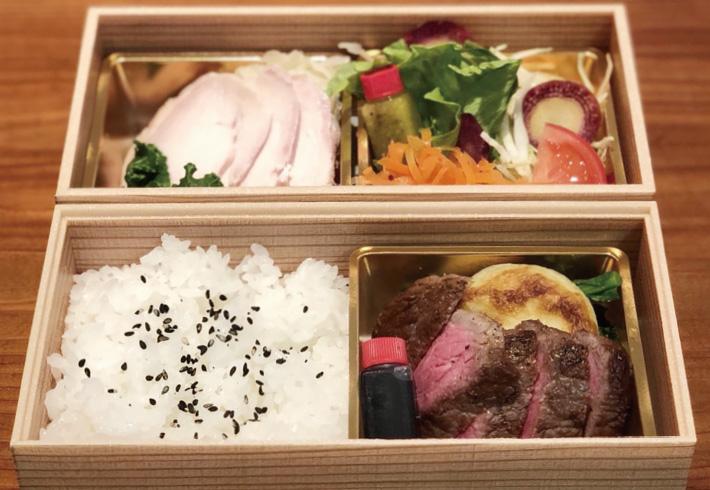 厳選した国産牛を直火焼グリルで一気に焼き上げ、旨味をとじこめたステーキをあたたまるお弁当箱で提供