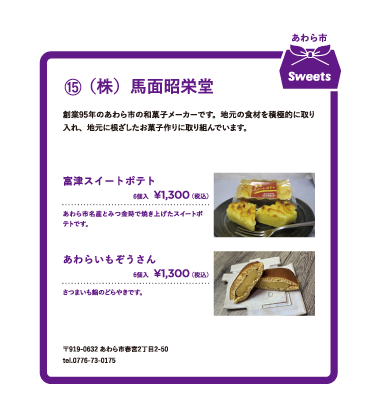 トップ 事業者の方販路を拡大したい商談・展示会福井の手土産展示販売会第12回福井みやげコンテスト出展者情報UPしました!