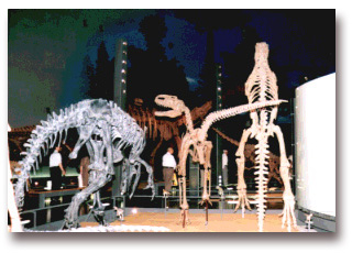 ![]() (所在地) 〒911-8601 勝山市村岡町寺尾51-11 TEL:0779-88-0001 http://www.dinosaur.pref.fukui.jp/ (施設概要) ■恐竜ホール(銀色の卵形をした展示室) ・34体もの恐竜の全身骨格をはじめ、数多くの標本や資料をそろえ、見る者を圧倒する迫力があります。 ・対面式のCGシアター「ダイノシアター」。中国四川省の恐竜時代を再現しています。 ・地球の生きた姿を理解する「地球の科学」コーナー。堆積物、岩石、鉱物や宝石、地球の現象などの展示。 ■ウィング棟(教育普及・研究設備・管理施設)。 ・3階=ダイノライブラリ、ミュージアムショップ、レストラン ・ジュースの自動販売機と水飲み場を2階に設置。 ・各所にスロープ、エレベーター有。車椅子の貸出有。各階に身障者用トイレを設置。 (開館時間) ![]() 午前9時から午後5時(入館は4時30分まで) (休館日) 第2・第4日曜日 (夏休みは休館なし) 年末・年始 (12月29日〜1月2日) (観覧料) ・常設展:一般500円(30名以上の団体は400円) 高校生、大学生400円( 〃 300円) 小学生、中学生250円( 〃 200円) ※ 毎月第3日曜日「家庭の日」は常設展のみ無料開放。 ※ 小学生未満、70歳以上、身体障害者の方は無料。 ・特別展:そのつど定める料金 (交通案内) 車 :北陸自動車道 福井北ICから約40分(国道416号線) 電車:えちぜん鉄道勝山駅(JR福井駅から約50分)から車で約5分 福井県立恐竜博物館は、恐竜化石の一大産地である福井県勝山市に建てられた恐竜を中心とする地質・古生物学博物館。福井県勝山(かつやま)市は世界有数の恐竜化石の産地で、全国の8割にもあたる化石を産出。勝山市北谷町の杉山川沿いには手取層群と呼ばれる中生代白亜紀前期の今から1億2000年前の地層が現れていて、恐竜研究の貴重な場所となっています。勝山市では「恐竜のまち」構想を策定し、県立恐竜博物館を中核施設とした長尾山総合公園の整備を進めています。2000年夏には、「恐竜エキスポふくい2000」が開催され、80万人以上が訪れました。恐竜博物館はもちろんそのメイン施設のひとつで、巨大な銀の恐竜の卵を模した外観が山の中腹にひときわ威容をはなっています。 |